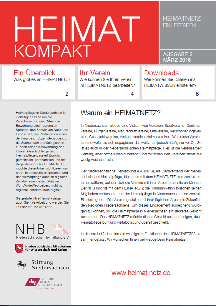 Der Niedersächsische Heimatbund e.V. (NHB), als Dachverband der niedersächsischen Heimatpflege, bietet nun mit dem HEIMATNETZ eine zentrale Internetplattform, auf der sich die Vereine mit ihrer Arbeit präsentieren können. Der NHB möchte mit dem HEIMATNETZ die Kommunikation zwischen seinen Mitgliedern verbessern und der Heimatpflege in Niedersachsen eine zentrale Plattform geben. Die Vereine gestalten mit ihrer täglichen Arbeit die Zukunft in den Regionen Niedersachsens. Um dieses Engagement ausreichend würdigen zu können, soll die Heimatpflege in Niedersachsen ein stärkeres Gesicht bekommen. Das HEIMATNETZ möchte dieses Gesicht sein und zeigen, dass Heimatpflege bunt und vielfältig ist und überall geschieht.