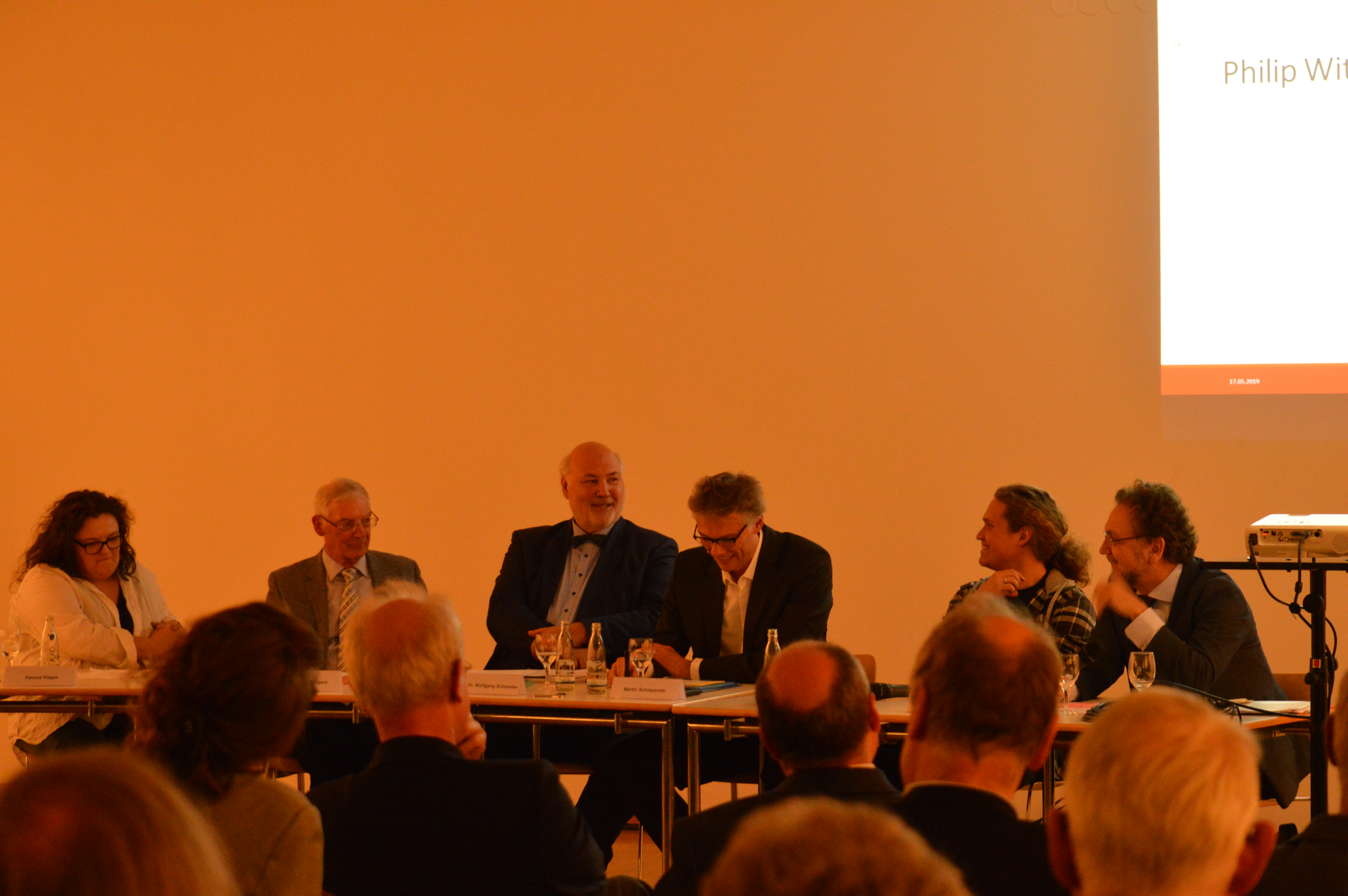 Nach dieser mit viel Applaus bedachten, fulminanten Rede wurde das Thema "Heimat ist Vielfalt" in einer Podiumsdiskussion mit Heimatmachern weiter diskutiert. Teilnehmer waren vom Kreisheimatbund Hildesheim Paloma Klages, vom Rüstringer Heimatbund Hans-Rudolf Mengers, Prof. Heribert Prantl, der Kultur- und „Heimat“-wissenschaftler Prof. Dr. Wolfgang Schneider sowie der Heimatmacher Philip Witte-Markgräfe aus dem kleinen Dorf Woltershausen unter der Moderation von Martin Schiepanski von der Hildesheimer Allgemeinen Zeitung. Die allseits gelobte Veranstaltung klang mit Wortbeiträgen und Fragen aus dem Publikum aus.