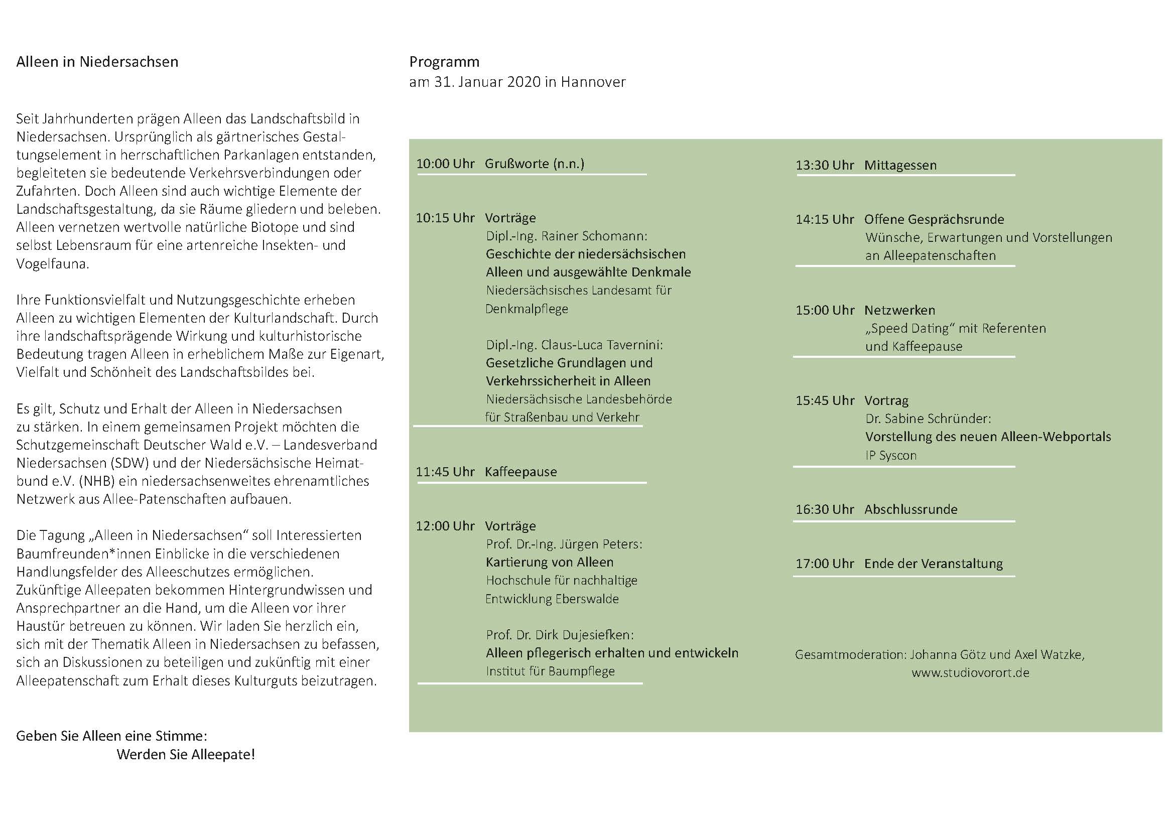 Einladung zur Tagung „Alleen in Niedersachsen“ am 31.1.2020 zum Download